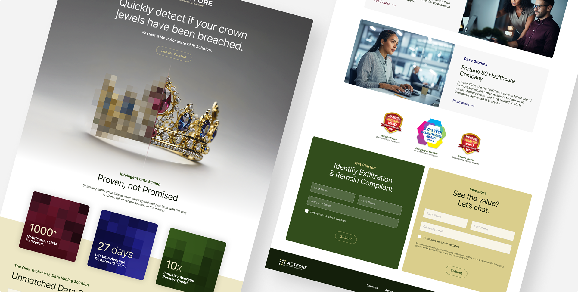 Actfore helps businesses protect their most valuable digital assets, ensuring resilience in the face of breaches. When the company prepared for acquisition, they needed a campaign that elevated their perceived value while building brand awareness. We created “Breeches Happen”, a concept that drew literal comparisons between priceless works of art and the priceless data companies risk losing. Using a pixelated grid overlay, we reimagined breaches as visible losses, reframing data protection through a striking visual lens. The campaign not only educated audiences about Actfore’s mission but also positioned the brand as forward-thinking and indispensable, supporting its acquisition goals.